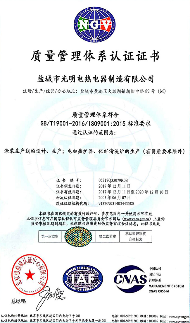 通過行業(yè)認(rèn)證,為客戶提供可靠電加熱設(shè)備!